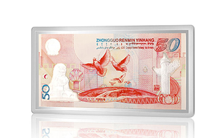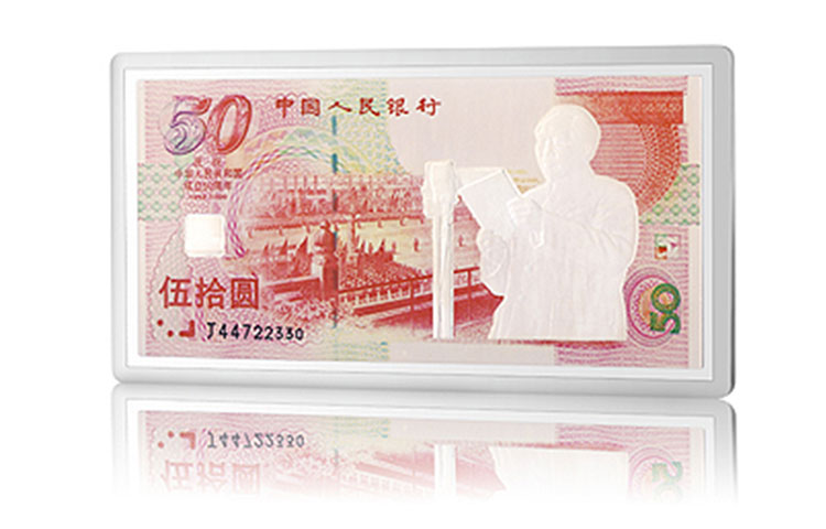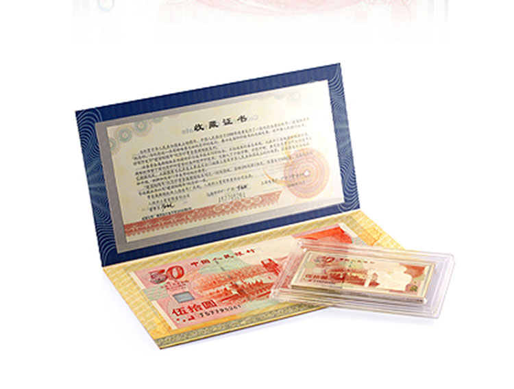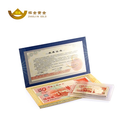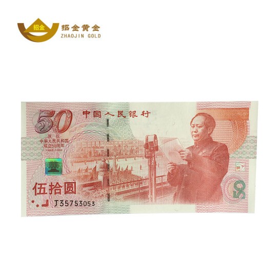 - 商品名稱:招金黃金 建國50周年紀(jì)念銀鑲金鈔50元